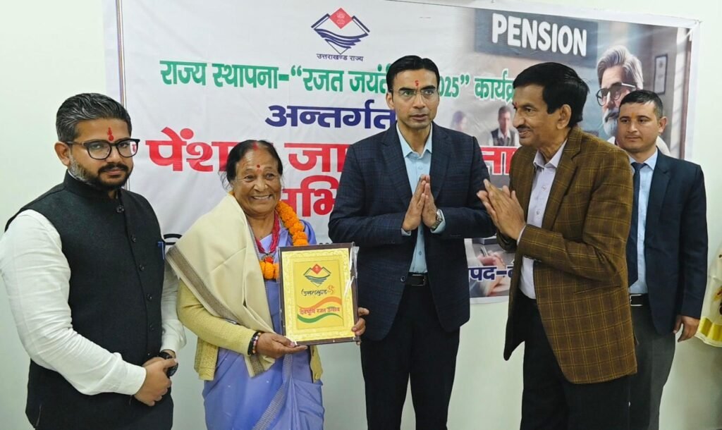 देहरादून। जिलाधिकारी सविन बसंल ने राज्य स्थापना की रजत जयंती पर 25 नवंबर,2025 को मुख्य कोषागार देहरादून में पेंशन जागरूकता एवं निःशुल्क चिकित्सा शिविर का शुभारंभ करते हुए राज्य आंदोलनकारी पेंशनरों को सम्मानित किया। इस मौके पर जिलाधिकारी ने मुख्य कोषागार में पेंशनरों की सुविधा के लिए जिला प्लान से 25 लाख लागत में नवनिर्मित ‘‘आरोहण’’ सभागार का लोकापर्ण भी किया और मुख्य कोषागार कार्यालय को 10 नए कम्प्यूटर देने की स्वीकृति भी प्रदान की।